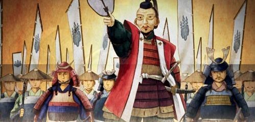 豊臣秀吉が登場、団扇を持って兵士たちに攻撃を命じる。