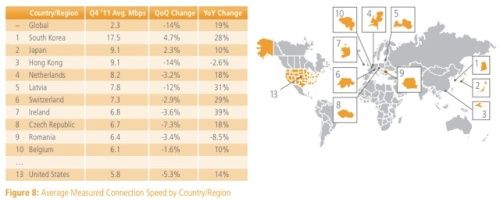 記録し、オランダ8.2Mbps、ラトビア7.8Mbps、スイス7.3Mbpsが続いた。米国は前分期より5.3%落