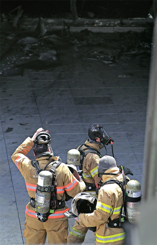 消防当局関係者は「2階で火が起きて1階の勤労者らは皆待避したように見える」として「2人の