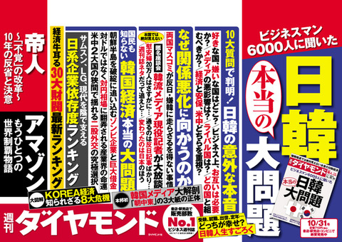 ▲『週刊ダイヤモンド』10月31日号第1特集「ビジネスマン6000人に聞いた日韓 本当の大問題」