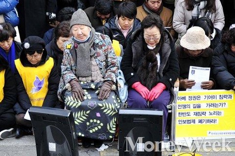女性らは「安倍晋三首相が直接『法的に間違っていた』と正式謝罪したわけでない」と批判。林氏は元慰安婦らの生存中の問題解決に最善を尽くしたと理解を求めたが、女性らは