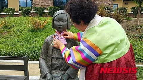 写真は昨年、カリフォルニア慰安婦少女像を訪ねたイ・ヨンスさん。