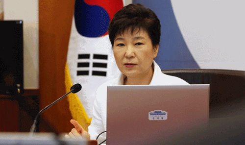 朴槿恵大統領が今月13日午前、青瓦台で開かれた閣僚会議で発言している。(写真=青瓦台写真記者団)