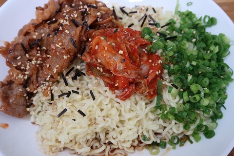 実際に言われたとおりに作ってみたところ、冷やし中華のタレのおかげで単体だとあぶらっこくなりがちな安い味付け焼肉をサッパリ食べられる。