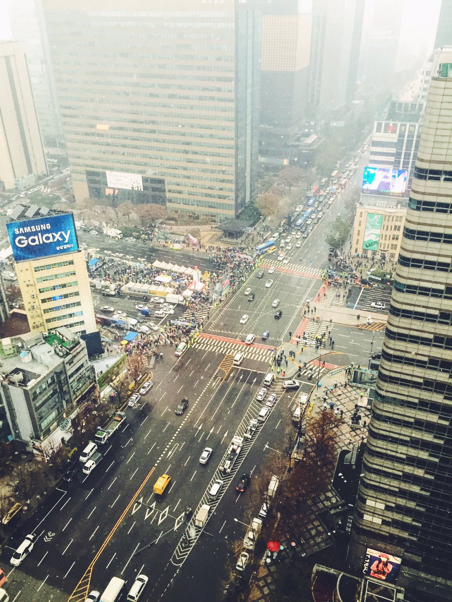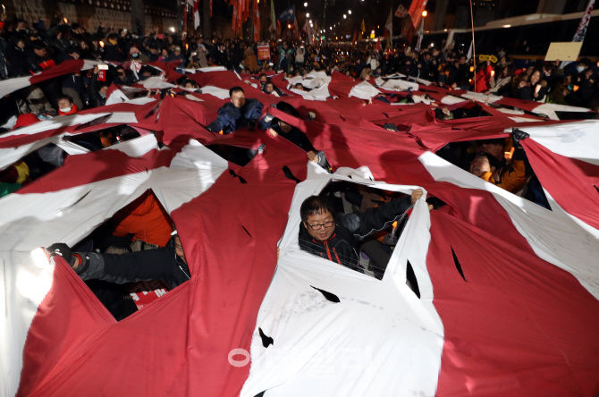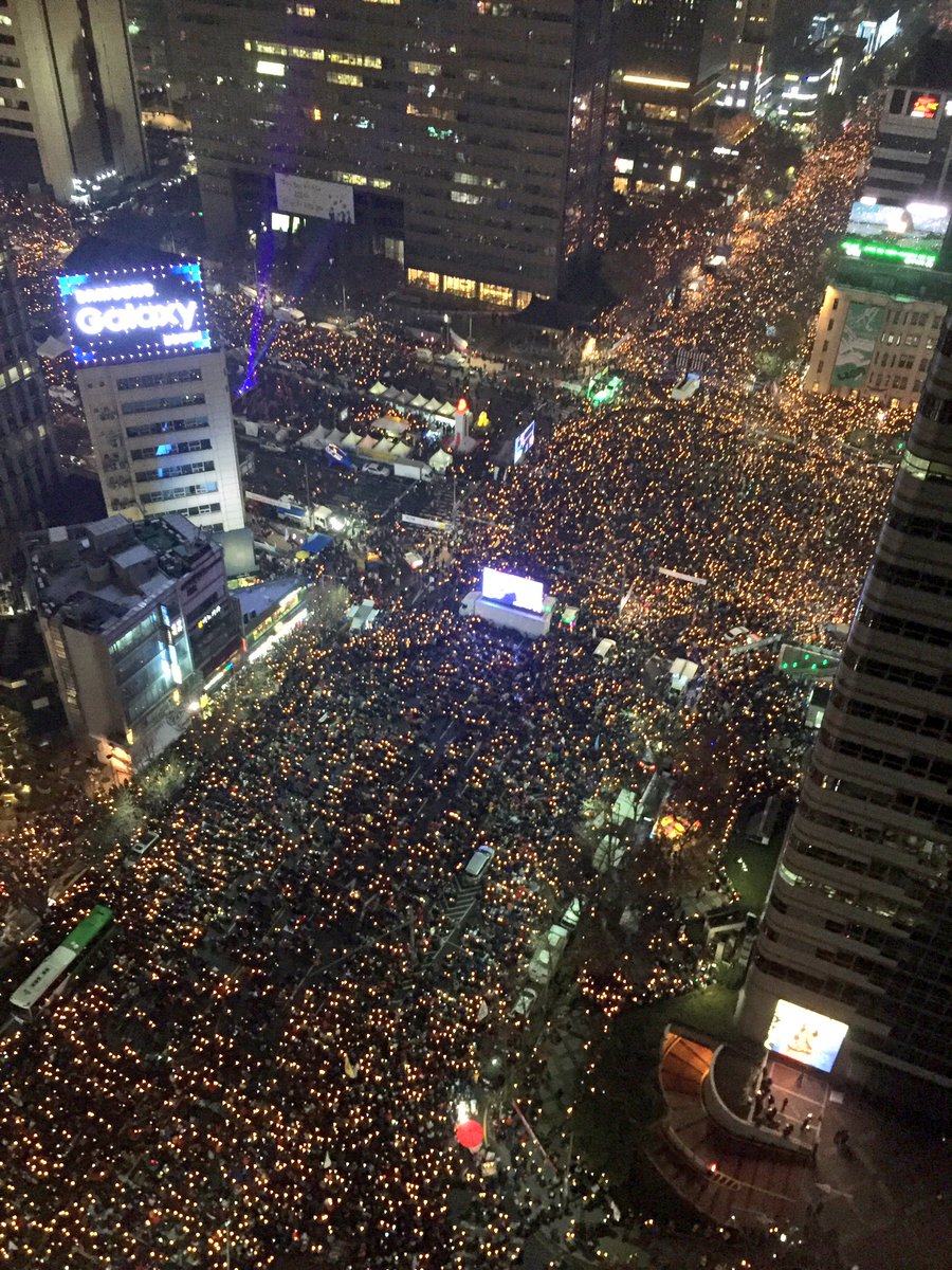 同日、市民たちは、裁判所が大統領府の200メートル前までの練り歩きを認めたことを受け、大統領府を東西と南側のほうで取り囲むU字型の「大統領府の周辺を人間たちでつなぐ」ことを実現して見せた。