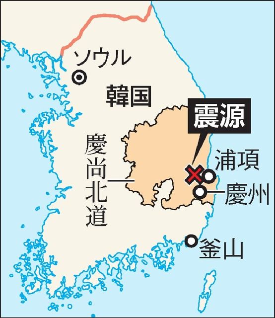 韓国南東部の慶尚北道(キョンサンプクト)・浦項(ポハン)市で15日に発生した地震が韓国社会にショックを与えている。韓国気象庁によると、地震の規模はマグニチュード(M)5・4で、「日本の震度4の弱い方」(日本の地震専門家)とされるが、1千棟以上の建物が損壊し、76人が重軽傷を負った。地震への備えの欠如や手抜き工事が指摘されており、日本との協力に関心が集まっている。
