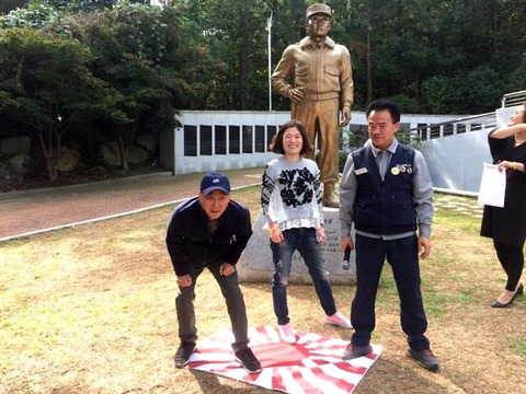 【韓国】「親日キム・ベクイルの銅像を歴史のハンマーでぶっ壊したい」・・・旭日旗を踏んで撤去求める