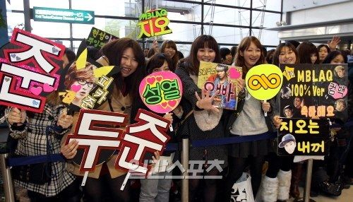 写真=10日午前、大阪の関西国際空港でお目当ての韓国人歌手を待つ日本の女性ファンたち。