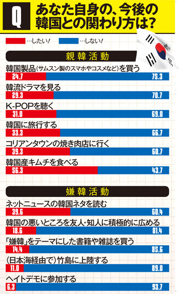 「韓国の悪いところを友人・知人に積極的に広める」という“信念の人”は、すでに20%近くに達している。