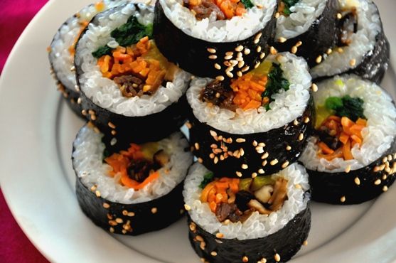 酢飯の代わりに胡麻油飯。わさび醤油の代わりに真っ赤なコチジャン(笑)