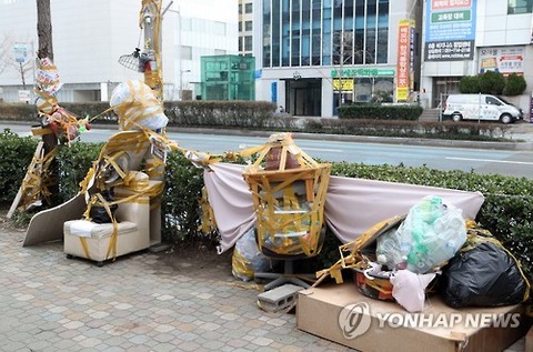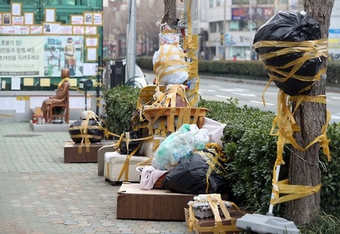 少女像の設置賛否をめぐる市民間の葛藤が度を超えている。 4日、釜山東区、日本領事館前の少女像の近くは少女像の移転を主張する男性が持ってきたゴミだらけになっている。