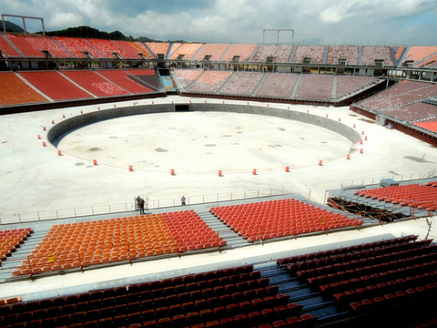 ■開幕まで半年に迫った平昌オリンピック。開会式が行われるメインスタジアムには、総工費約63億円をかけられたものの、観客席は完全な“吹きさらし”状態だった。