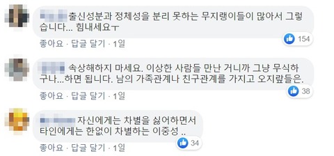 投稿文を読んだ韓国人は、「出身成分(階層)とアイデンティティを分離できない無知な輩が多い」とコメントし、学生を慰めた。